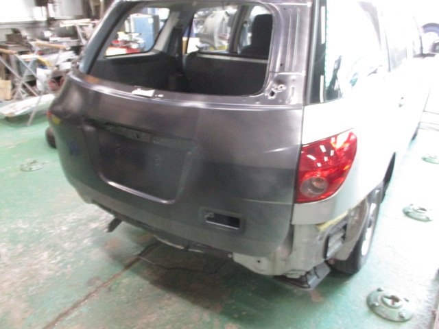 リアバンパーとバックドアを新品部品に交換しました。 - 塗装作業